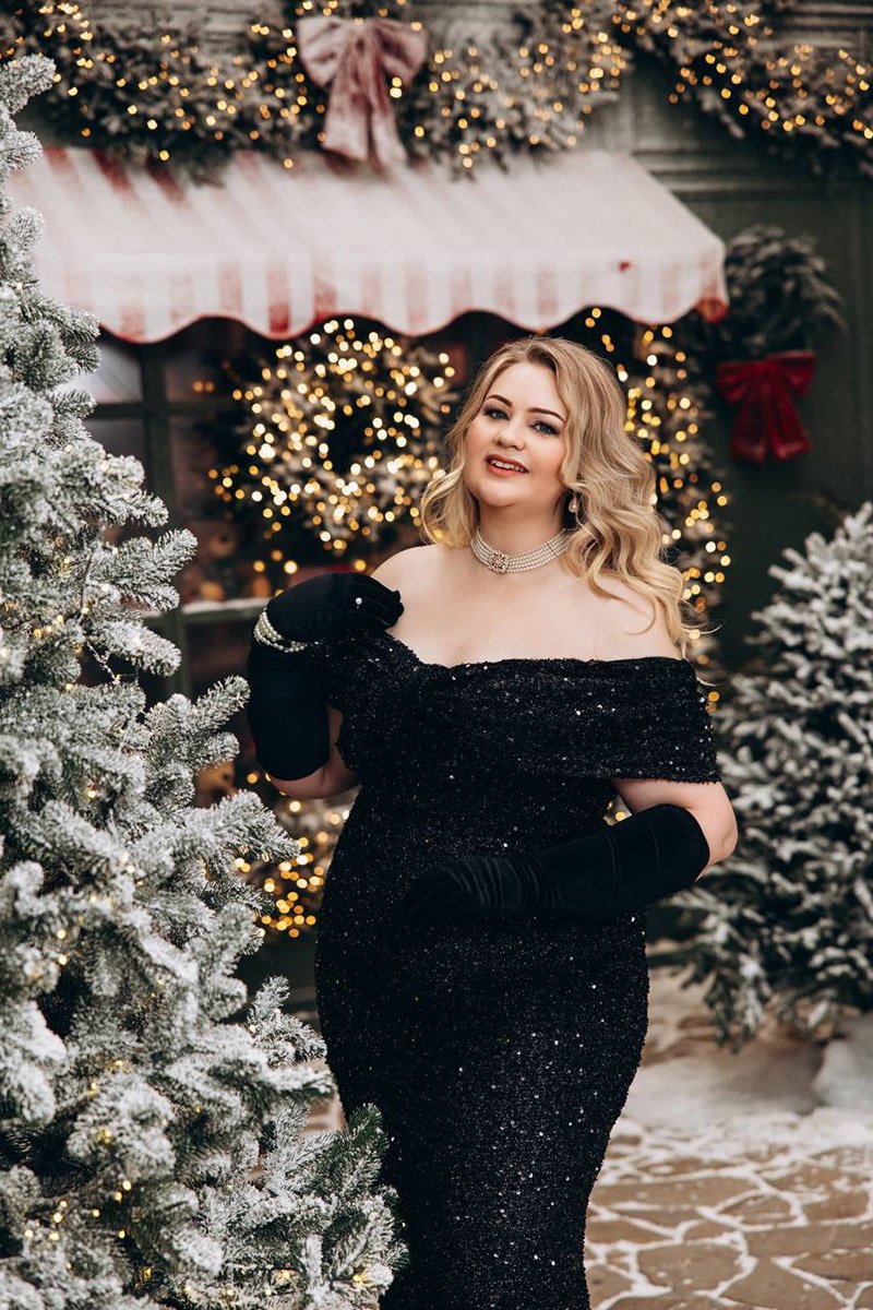 Доступна в оренду вечірня сукня дуже великого розміру. Стегна максимум до 140 см, довжина сукні 155 см. Це найбільша сукня з нашого шоу-руму. Сукня з відкритими плечима, пошита із приємної тактильної паєтки, сукня має підкладку та застібку по спині. У наявності є точно така ж зеленого кольору меншого розміру